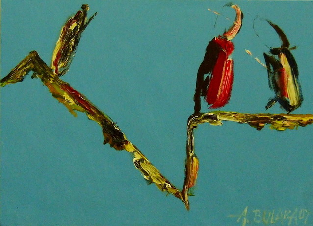 Alvydo Bulakos natiurmortai drąsiai gali būti vadinami ir peizažais, portretais ar aktais. Bene dekoratyviausi parodos darbai išraiškingai kalba spalvų ir potėpių salvėmis, bet kartu verčia žvilgsnį čiuožti tik pačiu drobės paviršiumi, nepasiekiant giliau glūdinčios minties („Po lietaus“, „Natiurmortas Samuoliui“).