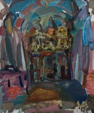 Aušra Barzdukaitė-Vaitkūnienėwww.kamane.lt, 2008 11 28   Šv. Jurgio bažnyčia Kaune (altorius),  2000 m., dr. al. 120x100 cmGyvenime nutinka tokių įvykių, kurie tik pabrėžia, jog atsitiktinumų nebūna. Tokiu įvykiu laikyčiau VDA KDF Tapybos katedros  buvusio A. Vaitkūno studento Gvido Latako parengtą interviu su Arūnu 2004 metų gruodžio šeštą dieną.Tame interviu, atsakinėdamas į G.Latako klausimus, Arūnas  apibendrino visą savo gyvenimą ir išsakė svarbiausias mintis apie tapybą. Arūnas: Andriušis (dailės kritikas Alfonsas Andriuškevičius ) knygoje „72 lietuvių dailininkai apie dailę“ manęs klausė, kada tapau dailininku. Atsakiau, kad negalvojau. Gal tai nebuvo pagrindinis dalykas. Ar baigęs mokyklą jau esi dailininkas? Studijuoji tą dalyką, bet instituto baigimas neužtikrina, kad jau esi dailininkas. Daugiau norėjau tiesos, tikrumo ieškoti. Galvodavau, užtenka nutapyti vieną gerą darbą. Stengiausi jį padaryti, kad būtų tikra. Dėkui A. Andriuškevičiui už komplimentą. Kiti turi pasakyti, kad esi dailininkas. Darbai turi tą paliudyti. Tikslas buvo tiesos, esmės ieškojimas tapybos priemonėmis.Dailės (J. Naujalio meno mokykla) mokykloje dėstė A.Lukštas. Vėliau, institute (Vilniaus dailės institutas, dabar Lietuvos dailės akademija) Jonas Švažas, Vladas Karatajus. Negaliu arogantiškai sakyti, kad nebuvo gerų dėstytojų. Institute mokantis galima daug ko ir nežinoti. J.Švažas buvo pavažinėjęs po pasaulį. Turėjo informacijos apie meną. Tai mums buvo svarbu.A.Monticelli man labai patiko. Jo tapyba labai graži. Paryžiuje, d‘Orsay muziejuje, yra jo penki darbai. Van Goghas jį atrado ir verkė prie jo darbų. Vėliau iš šio tapytojo perėmė trumpą, vingiuotą potėpį.Parodų, senųjų meistrų vykdavome pažiūrėti į Maskvą, Peterburgą. Atsimenu, į Minską buvo atvežta  F.de Zurbarano darbų paroda. Važiavome specialiai žiūrėti. Dar patiko De Chirico, Chaimo Soutine, Fransiso Bacono spalvos, Nicolas De Staelis.Ar buvo tarp bendramokslių konkurencija? Viskas vyko tokiomis bangomis. Vienais metais stipresnis kursas, kitais silpnesnis. Tuo metu mokėsi Raimundas Sližys, Mindaugas Skudutis, Mindaugas Navakas. Jie turėjo daug ambicijų, darė SMD parodas. Arvydas Šaltenis turėjo daug energijos. SMD parodos buvo alternatyva kursinių darbų peržiūroms. Žemesniame kurse studijavo Šarūnas Sauka. Buvo tokių, kurie labai gerai tapė, bet gyvenime pasuko kitu keliu. Meno srityje neišsilaikė. Tokia tad konkurencija.Tapybos, piešimo paskaitų niekada nepraleisdavome. Geri tapybos darbai būdavo paimami į instituto fondą. Tai laikėme garbe.Institute esu nutapęs kelis Justino (Justinas Mikutis) portretus. Baigęs institutą  esu padaręs dar penkis Jusčio portretų variantus. Stengdavausi, kad išeitų tapyba, o ne tik portretas. Vėliau Justis sakydavo, kad portretus galima tapyt, jei reikia pragyventi, tik Lenino neleido tapyti.Institute mano baigiamasis darbas buvo Juozo Mikėno portretas. Kūrybinė aplinka, gyvenimo buitis? Tuo metu Justinas Mikutis turėjo orginalių įžvalgų. Kalbėdavome apie meną. Justis buvo žmogiškas, mėgo vyno išgerti. Mes, tapytojai, buvome perskaitę visą  F.Dostojevskį. Ten tikra egzistencija. Jis labai sunkus. Tarybiniais metais tiko. Mes su Augiu Varkulevičiumi net vaidmenimis iš „ Brolių Karamazovų“  buvome pasidaliję. Tuo metu Justis pozuodamas Mandelštamą deklamuodavo. Labai tiko tuo metu : „...Kak бoлъшaя птицa вылeтeлa из грyди, пycтaя клeтka пoзaди, a впeрeди гycтoй тyмaн.“ Santvarka stengėsi iš žmonių atimti tikėjimą. Palikti tuščią narvelį. Dievas liko su mumis.Kai baigiau institutą, atsimenu Kaune tuščią dirbtuvę. Po kiek laiko žiūriu, kad nėra ką daryti. Jau paskutiniais metais institute suvokėme, kad išvažiuoti niekur negalėsime, o kompromisų nenorėjome daryti. Likome čia, bet ką daryti dailininkui? Vaikštai su atviru klausimu. Atradau laiptines. Jos su manimi pradėjo šnekėtis. Svarbu, kad būtų ryšys. Porą mėnesių jų ieškodavau, o kai rasdavau, per porą valandų turėdavau nutapyti. Turi būti kaip gerai suderintas instrumentas. Tada negalvoji apie tapybą. Kartais ir dabar į kokią laiptinę įlendu.Vėliau keliavome po Žemaitiją. Su Jusčiu važiuodavome, su Antanu Obcarsku. Augis (Eugenijus Varkulevičius) Žemaitijoje stacijas tapė. Keliaudavau vienas po Žemaitiją, Dzūkiją. Kai būdavo labai sunku, skaitydavau  Knutą Hamsuną, stoiškas rašytojas. Keliaudavau vienas, šnekėdavau su žmonėmis. Iki Pelesos buvau nukeliavęs. Apsistojau pas Kruopienę. Jai padėjau, malkas suskaldžiau. Ji man kiaušinienės iškepė. Kokius  ketverius ar penkerius metus vasaromis keliavau. Blonknotuose Lietuvą perpiešiau. Vėliau iš tų blonknotinių piešinių dirbtuvėje tapiau didelio formato darbus.Mano tapyboje buvo gana skirtingų periodų. Kai tapiau laiptines, sakė, kam čia tokius tapai? O vėliau kolekcininkai pradėjo pirkti. Kai tapiau didelius darbus, 1992 m. ŠMC surengė mano parodą, kelis darbus pasiliko. Kaune šnekėjo: kam tu keitiesi, tapyk laiptines.Bijojau, kad neimčiau savęs kopijuoti. Kampui patiko mano dideli darbai. O kai „šluotinius“ nutapiau, tai vieni sakė, kad visiška nesąmonė, o kiti sveikino: štai pagaliau pradėjai tapyti, seniai taip reikėjo dirbti. Aš laisvas žmogus, ką noriu, tą ir tapau.Kiti, vientisesni, pvz., Audronė Petrašiūnaitė, iš pradžių tapė tamsaus kolorito darbus, vėliau spalvos išskaidrėjo, bet tapyba išliko vientisa. Aš dabar vėl prie aliejaus sugrįžau.Kai nežinai, kaip paveikslas atsiranda, yra prasmė tapyti. Jei būtų galima išsiaiškinti,  nebūtų prasmės kurti.Geriausi darbai buvo tapomi visai negalvojant apie tapybą. Negalvojama, kaip tapyti, o ką tapyti. Štai šitą man reikia nutapyti, pvz., šitą orą. Kaip tai padaryti, aš neži