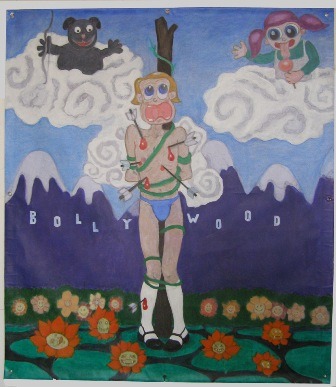 Ši schema tinka ir krikščioniškos ikonografijos panaudojimams (A basic spirituality of white race adapted for transformer robots, Sebastijono mito kultūrinės adaptacijos). Šventojo Sebastijono mito atributika įkurdinama svetimoje, paradoksalioje aplinkoje. Rezultatas – Holivudo kalvose leipstantis homoseksualių bruožų šventasis Sebastijonas.