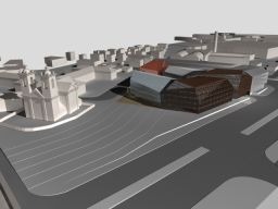 Vl.Stauskas. Šitas kampas panašus į „Pieno centro“. Siūlau atsisakyti atskiros aukštesnės dalies ir visą kampinę erdvę formuoti vienodo aukščio tūriu, pvz., parodyto brėžinyje aukščio. Antra, numatomame moderniame fasade ir kampe būtų visai įdomu palikti esamo pastatėlio kampą ir fasadų plokštumas. Galbūt jos atsispindės ir fasado stikle.