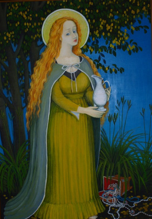 Stebėdami E.Kniūkštaitės paveikslus galime ištrūkti iš miesto pilkumos ir persikelti į tykų ir taikų pasaulį, kuriame viskas atrodo nesudėtinga ir vaikiškai tyra, kur tarp žmogaus ir gamtos vyrauja harmonija, o šventieji ir angelai svečiuojasi Žemėje.