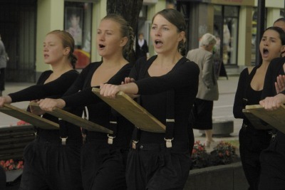 Rugsėjo 1-ąją, per patį vidurdienį, Laisvės alėja suskambo šūksniais, kurie priminė ir svarbų pranešimą, ir aukojimą, ir protestą, ir išpažintį. Visiškai netikėtą, iš anksto nereklamuotą, tačiau bemat būrius praeivių sutraukusią gatvės akciją „Žinia“ Kaunui surengė Vilniaus kolegijos Menų fakulteto studentų trupė „P.S.“