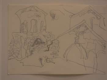 Paskutinėje parodos salėje erdvu ir tylu, nelyginant šventovėje. Ant sienų – vien tik fotografijos, jomis užbaigiama ekspozicija. Erdvėje plevena paskutinieji A.Vaitkūno eskizai. Kitaip nei Kauno laiptinių škicai, gruzinų šventyklų griuvėsiai piešti neužtikrinta ranka. Linijos virpa ir rezgasi, lyg žemė po kojomis jau būtų buvusi netvirta.