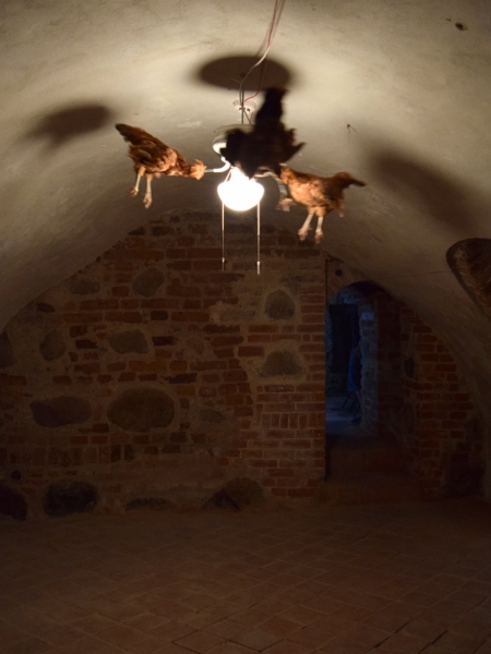 Mano nuomone, labiausiai prie meno kraštutinumo priartėjo Audrius Gražys instaliacijoje „Laisvės pojūtis“. Trijų vištų iškamšos, besisukančios prie lubų, ir šlykštus dvokas, pykinantis vegetaro (ir ne tik) širdį, pasitinkantis vos įžengus į patalpą – štai kur yra meno riba, kurios neverta ne tik peržengti, bet ir pasiekti. Skrendančių vištų lavonų atmosferą puikiai papildo drėgni Šv. Jono gatvės galerijos rūsiai. Nesiginčysiu, jog vizualiai kūrinys yra vientisas ir paveikus, tačiau dėl stipraus užvaldžiusio noro kuo greičiau dingti iš patalpos, kuriame jis eksponuojamas, daugiau į jį nesigilinsiu ir šiose eilutėse.