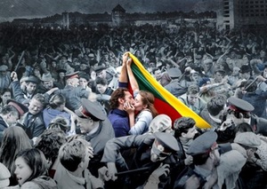 Patriotiškumo jausenas sustiprina ir didžiausią emocijų proveržį iššaukia netikėtai virš Kauno dramos teatro trumpam sušmėžavusi Lietuvos trispalvė. Vyriausias teatro trupės aktorius (vaidina Česlovas Stonys) pasipriešina teatro direktoriui Korsakui (Remigijus Vilkaitis) ir, užsidaręs viename iš teatro kambarių, pro Dramos teatro langą iškelia tautinę vėliavą. Tokias permainas suvokę gatvės praeiviai susivienija – visi kartu veržiasi į laisvę. Pamiršę taisykles ir nerimą, jie nors trumpam išsilaisvina iš sistemos gniaužtų ir iš visos širdies skanduoja Lietuvos vardą.