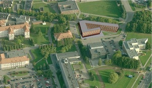 Matau tokias problemas: naudojama sena klinikų fotonuotrauka ir nėra urbanistinio maketo. Keista, kad universitetas nepateikia visos medžiagos – būtinas universitetinio miestelio detalusis planas. Taip pat neparodytas mūsų projekte numatytas dviejų aukštų garažas. Be parkavimo sprendinių jūsų projektas negalės būti įgyvendintas. Neaišku, nei kur yra automobilių vietos prie pastato, nei ūkinė įvaža, nei pagrindinis patekimas.