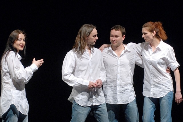 There are fewer elements of the political theatre in the second part of the performance - the problems remain actual but the actors do not avoid direct contact with the audience, they distance from their created characters. While the first part of the performance was full of irony turning into vitriol, the second act is very light, it represents the good and innocent look to the world.
