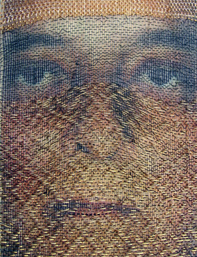 The artist realises the classics of weaving as an objective thing and tries to turn into part of contemporary art by analysing classic weaving techniques coherently. The idea of an artwork is closely related with specific possibilities of technique and fibres for L.Oržekauskienė. Skeins of different thickness and shade model form optically and create the variety of colours. It is a complicated technique demanding great accuracy created by the author herself. Every skein (of gold, hair or cotton) is not only decorative but also renders a code of information. The impact is really strong – it seems as if one is standing at a live body or icon.