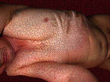Another field of interest of L. Oržekauskienė is the visual features of an ornament and its symbolism. The artist follows the Indo-European ornamentation, patters of Baltic webbings. The ornament of uncinate cross prevails. Lately metamorphoses of crux gammata ornament are becoming a basis according to which magic dimensional views of a body are modelled by computer technologies.