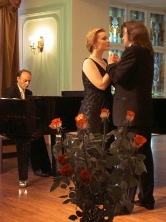 The songs were performed by young Russian performers who have already gathered some titles – the winner of international contests, soloist of Moscow Philharmonic V.Avtomonov (powerful and emotional baritone) and the winner of international contests, doctor student of Moscow State P.Chaikovski Conservatory D.Zykova (subtle and professional soprano). Her voice contrasted with the baritone by the strength - after emotional shows of V.Avtomonov, romances interpreted in a subtle manner by the soloist made everyone listen up. The singers were accompanied by the pianist Aleksej Lukovnikov, a lecturer of Moscow State P.Chaikovski Conservatory. He played in a subtle manner and sounded expressively in the solo episodes.