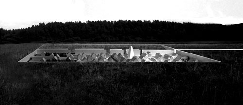 The author offered to move the present prison located near Lukiškių Square in the centre of Vilnius to the outskirts of the city. The new prison-town would have streets, building and a centre. The complex would be lower than the ground level; therefore, prisoners would see a high concrete wall expressing the punishment from all places.