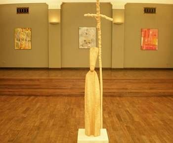 He did not organise any public requital day, and artists brought their works willingly themselves. Only the wooden pope of S.Straigis was brought from Paberžė by the priest on the opening day. Other artists created sketches and thought in the summer plein-air, and later this activity gained the material shape. The plein-air took place in the sacral space that remembers Father Stanislovas well. Therefore, no question arises why the portrait of the late artist Raimundas Mikšys created by I.Mikuličiūtė is presented in the exhibition. The portrait is painful, similar to the life of R.Mikšys, who never sold his spirit.