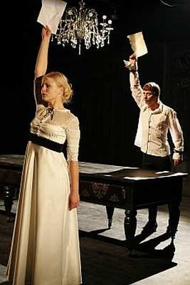 The situation is completely different in “the ward" of the young director Artūras Areima, who has recently finished the Master studies of direction at the Lithuanian Academy of Music and Theatre (head of the course – Rimas Tuminas). Tidiness and cleanliness prevails here; everything is controlled by the strict hand and rational brain in the performance “Happy” staged according to the play of the German playwright, poet, philosopher Friedrich von Schiller “Intrigue and Love“.