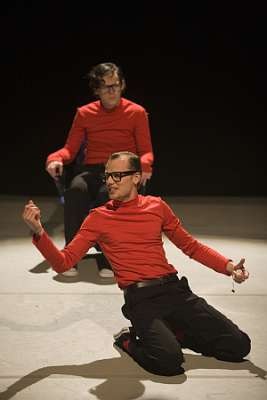 The philosophical aspect of Chekhov’s works is emphasised in the performance. The parallel of characters created by R.Kazlas and L.Laucevičius born from their confrontation is a serious and thorough dispute encompassing the theme of laws of the real life and life beyond. It may be stated that the performance is a stage version of a philosophical lecture, in which the polyphonic and multi-layered actors R.Kazlas and L.Laucevičius are tossing unable to decide, which mixture of genre should be taken: the characters behave as if they have swallowed the pill of caricature at one moment and the pill of tragedy later.