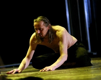 The performance of plastics of the Polish actor Janusz Stolarski “Code” may be accepted or rejected. The body moving inside the circle drawn by chalk is forced to move by existential questions. The actor who says no word speaks by his body moving according to sacred music. Some spectators hear his language while others don’t. The relation (or the lack of it) with J.Stolarski’s plastic philosophy appears depending on the fact whether a spectator asks himself similar questions at that time.