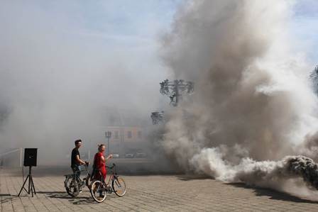 These are only several moments from the rich repertoire of performances. During the festival every active viewer could feel this marginal status, the ritual-like break, when he/she transits from one status to another. One could think about the paradox on the last day during the performance of MeKuSa “I will Vanish like Smoke”, when poems of Maironis were read in the thick smoke. The great Lithuanian poet wrote: “I will vanish like smoke not tossed by the wind, and no one will mention my name!”; however, the thick smoke disappeared but Maironis is still mentioned. The poet immortalised himself in the moment of disappearance. The art of performance is similar – although short-lived and passing, it creates the feeling. While the view disappears and is erased, the experience remains.