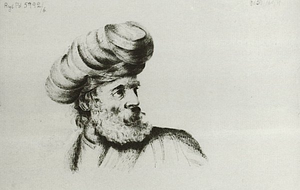 Bearded Turks and black people that appear in the drawings of J. Rustemas, most probably come from the memories of the manor. Although, it is possible to assume, looking at the sketch of "Slave Sale" that this scene may have been witnessed by the author in the Ottoman Empire. Looking at the drawings of the painter we can see many scenes of a Turkish everyday life: Turkish men drinking tea, smoking long pipes, camel caravans, dozens of portraits of turban-wearing men and women, who are often decorated in a European fashion.
