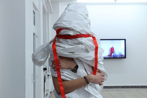 Three Lithuanian artists Daina Pupkevičiūtė, Gabrielė Gervickaitė and Andrėja Šaltytė took part in the exhibition Suniro held at Бükü cultural centre in Leipzig, Germany, on November 13-28, 2015. The exhibition was opened with the performance of Daina Pupkevičiūtė on Nomveber 12, 13 and 14. The lecture Different bodies, similar needs: What bonobos can teach us about the roots of social relationships was read by Liza R. Moscovice on November 16. This is a reflection about the exhibition written by the Finnish art critic Jenna Jauhiainen.