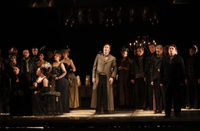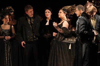 “La Traviata” performed on the 14th of April was also unusual by the fact that the main roles were sung in Italian, while others – in Lithuanian. It is a rather unusual solution for Kaunas State Musical Theatre as it follows the tradition that all works should be performed in the native language. Still, it is rejoicing that at least part of the opera sounded more authentic this time. On the other hand, the semi-Italian and semi-Lithuanian variant of “La Traviata” appeared slightly eclectic. R. Vaicekauskaitė, A. Janutas, V. Juozapaitis singing in Italian were really sensitive and persuasive, while other actors singing in Lithuanian sounded slightly provincially.