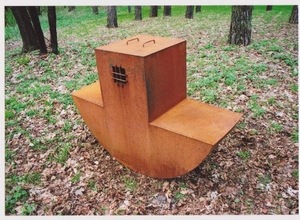 Some works create noise themselves, in other cases noise should be produced by a visitor. The third group of exhibits are silent and sound is left for imagination (paintings of Aušra Andziulytė) or created artificially. Such are works by Algimantas Šlapikas “Doors”, “Safe Cradle”. The latter work of the sculptor is very persuasive – the huge metal construction manipulates with experience of a human being. A question arises – why is this cradle safe?