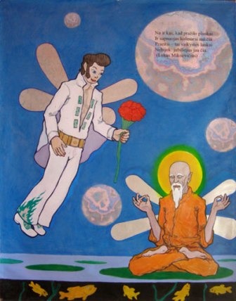 The artist chooses two international languages – Latin, the language of Europe until the 19th century, and English, the universal language of today. The linguistic aspect enjoyed by post-modernists grants originality to the exhibition and enables the author to express his position in a more specific and lively manner. Still, illiteracy of the artist may be noticed in paintings as well as annotation of the exhibition. Is it a deliberately staged means of expression?