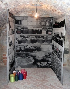 The work “Cellar” of one of the most famous Kaunas textile artists Monika Žaltauskaitė-Grašienė received the title of the most outstanding installation of 2009. The walls of a small room are covered by photographs of jams accumulated by the author’s father who died recently. The photographs have been woven using the traditional jacquard weaving technique. The most precious things of the artist, threads, are stored along with jams in the “Cellar”.
