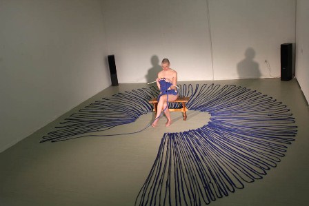 Jaunųjų kūrėjų duetas galerijoje sukūrė estetišką ir švarų reginį. Buitiškas veiksmas – mezgimas – buvo pateiktas kaip tam tikra meditacijos forma. Kalbu ne tik apie pačios menininkės meditavimo procesą, bet ir apie žiūrovų paveikimą. Net keista, kaip žmonės greitai persiorientuodavo, iš kalėdine nuotaika šurmuliuojančios Kauno rotušės aikštės patekę į apmąstymams nuteikiančią galerijos erdvę. Tarp baltų sienų, mėlynų siūlų žiede sėdinti nuoga kaip kūdikis mergina, nereaguojanti į aplinką, ignoruojanti šaltį ir nuovargį (performansas truko 7 val. su pusvalandžio pertrauka) ir D. Pupkevičiūtės sukurto garso fone mezganti šaliką, nukelia stebėtoją į tą paralelinį pasaulį.