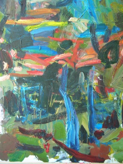 Spalva verčiama į šviesą. Išnyranti iš už juodų, rudų, gilaus ultramarino ar purpuro spalvos medžių, šakų siluetų. Dabar šie saulėlydžiai -- tapyba ir tapytojas -- kaip vienas kūnas.