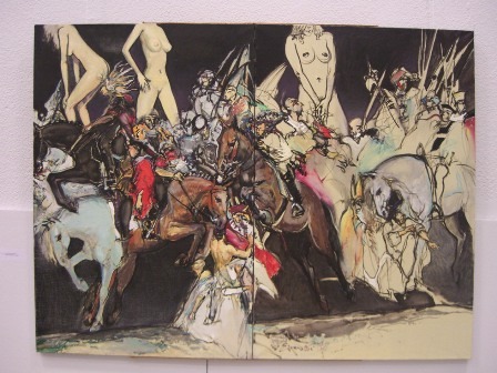 Tapyboje - salstelėjusių peizažų, „pritrenkiančių“ natiurmortų, drumzlinų abstrakcijų parado fone išryškėja Elenos Balsiukaitės ir Prano Griušio paveikslai.