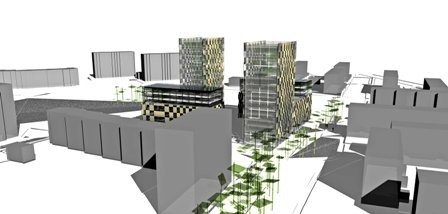 Pateikta panorama nuo greitkelio rodo, kad projektuojami tūriai iškyla virš esamo užstatymo ir papildo aukštujų pastatų kompoziciją. Konceptuali komplekso estetika pasirinkta todėl, kad aplinkiniai statiniai seni, reikia naujesnio ženklo. Tai nėra techninio projekto svarstymas, tik detaliojo pagrindimas. Estetinis įvaizdis primena lietuviškų raštų motyvą. Manau, toks galėtų ir likti.