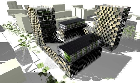 Planuojamame sklype numatoma statyti ne aukštesnius nei 50 metrų pastatus, išlaikant normatyvinį užstatymo tankį ir intensyvumą. Teritorijoje planuojami du pastatai. Pastato planinė ir tūrinė formos išskaidomos į tris atskirus tūrius, kurių aukštingumas skirtingas (vienas iš tūrių - 16 aukštų, antras - 4-5 aukštų, trečias – 7-8 aukštų). Pastatų planinė ir tūrinė formos yra identiškos.