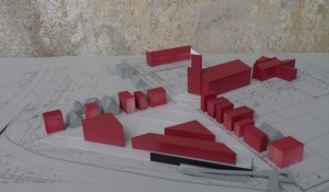 V.Rimkutė: Idėja paprasta - formuoti erdvę bažnyčiai. Norisi aukštesnio nei 2 aukštų pastato, kita dalis galėtų būti žemesnė, atverianti vaizdą į bažnyčią. Nepabėgome nuo trikampės formos. Suformuoti du pagrindiniai keliai į aikštę.