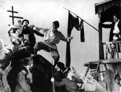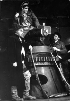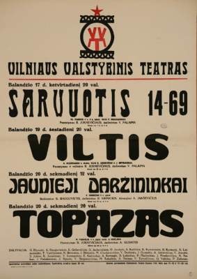 Taip pat ir kitų sričių menininkus - aktorius, režisierius, kompozitorius politinių užsakymų vykdymas privertė nužengti į minią. Tik teatralų „persiorientavimas“ užtruko ilgiau. Įspūdingos šriftinės teatro afišos tebedvelkia prieškario estetika ir liudija, kad 1941 m. pradžioje Vilniaus, Šiaulių, Kauno teatruose prasidėjo ideologinių spektaklių era. Vilniuje, Lietuvos valstybiniame dramos teatre, 1941 metais pastatytas Vsevolodo Ivanovo spektaklis „Šarvuotis 14-69“ (režisierius Romualdas Juchnevičius, dail. Vytautas Palaima). Žiūrint į šarvuotį aptūpusius bolševikus (Valys Derkintis, Petras Zulonas, Mečys Chadaravičius) ir „bobą nuo cerkvės stogo“ (Ona Juodytė), taip norisi rasti nors mažiausią ženklą, kad lietuvių aktoriai socrealizmo absurdui buvo atsidavę nevisiškai, kad vaidino laikydami „špygą kišenėje“. Sprendžiant pagal grimo kiekį ant Onos Juodytės veido, neatrodo, kad būtų save tausojusi... Pritarčiau kažkada „Šiaurės Atėnuose“ perskaitytai minčiai, kad galima manyti, jog 1940-ųjų lūžio laikotarpiu menininkai naiviai tikėjo, jog Lietuvos prijungimas prie stalininės diktatūros valdomos imperijos pagerins žmonių gyvenimą. Inteligentija tikėjosi išsaugoti bent jau kultūrinį suverenitetą, manė, kad politiniai pokyčiai menininkų nepalies. Jie norėjo pripažinimo, materialinio atlygio ir tikėjo, kad dosnioji sovietų valdžia įvertins jų pastangas. Bet ar ne perdėm pavojingas buvo tas šviesuomenės naivumas?
