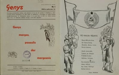 Rimto sovietų valdžios dėmesio susilaukė vaikai. 1940 m. rudenį pasirodė mėnesinis žurnalas „Genys“. Kas sugalvojo šį pavadinimą, nežinoma, bet galima tik stebėtis jo autoriaus sugebėjimu net ir gamtoje matyti ideologijos ženklus. Raudona genio galvelė lėmė šiam paukščiui būti sovietinių vaikų bičiuliu, kartais, beje, ir visai puikiu, nuoširdžiu žaidimų draugu. Parodoje galima pavartyti pirmųjų „Genio“ žurnalo numerių kopijas. 1940-1941-aisiais pramaišiui, neįkyriai „Genyje“ buvo spausdinami mieli vaikiški lietuvių autorių tekstukai ir verstiniai eilėraščiai, pavyzdžiui, apie raudonarmiečius. Tą patį galima būtų pasakyti ir apie iliustracijas.