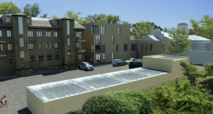 H.Štaudė: Aukštingumas – nuo 2 iki 4 aukštų. Intensyvumas – 0,9 proc., užstatymo tankumas – 37 proc. Automobiliams skirtos 22 vietos.