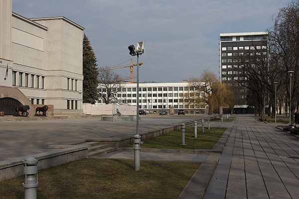 J.Minkevičius: Aikštės idėja ginčytina – ji nėra skirta kultūrai, daugiau – darbui. Šią aikštę laikome savo epochos ženklu. Galima tos epochos architektūrą pratęsti, sustiprinti arba ignoruoti. Šiame projekte siūloma ją pratęsti. Pagrindiniai pastatai nekeičiami, naujo korpuso kūrimas – pagrindinis uždavinys.