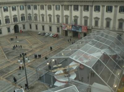 Plūstančiuosius žiūrėti XX a. italų dailės į Novečento muziejų visai šalia įėjimo į M.K.Čiurlionio parodą pasitinka laikinas itališkų lėktuvų ir skraidyklių paviljonas. Technikos invazija į gotikinės katedros aikštę netikėta, bet tikslinga. Link naujojo muziejaus patraukia ne tik paveikslų, bet ir dizaino, technikos mėgėjai. Juk italai – ne tik futuristai, jie vadinami ir “inžinierių tauta”, todėl atpažinimo, savos istorijos prisiminimo momentas čia tinkamai panaudotas. Naujojo muziejaus vidus akivaizdžiai dvilypis. Salėse vyrauja klasikinė muziejinė tvarka, kitur ryški dinamiškoji futurizmo dvasia: mirga švieselės, aukštyn žemyn žlegsi keltuvai, pasiekusieji viršutinį aukštą gali grožėtis keletos amžių laimėjimais iš karto – Luciano Fabro kūryba, gotikinės Katedros pinakliais ir Vittorio Emanuelle II galerijos (1877), skirtos prekybai, spindesiu.